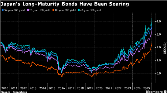 该国30年期和40年期债券收益率均飙升逾25个基点,创下自去年美国总统特朗普“解放日”关税令全球市场动荡以来的最大波幅。